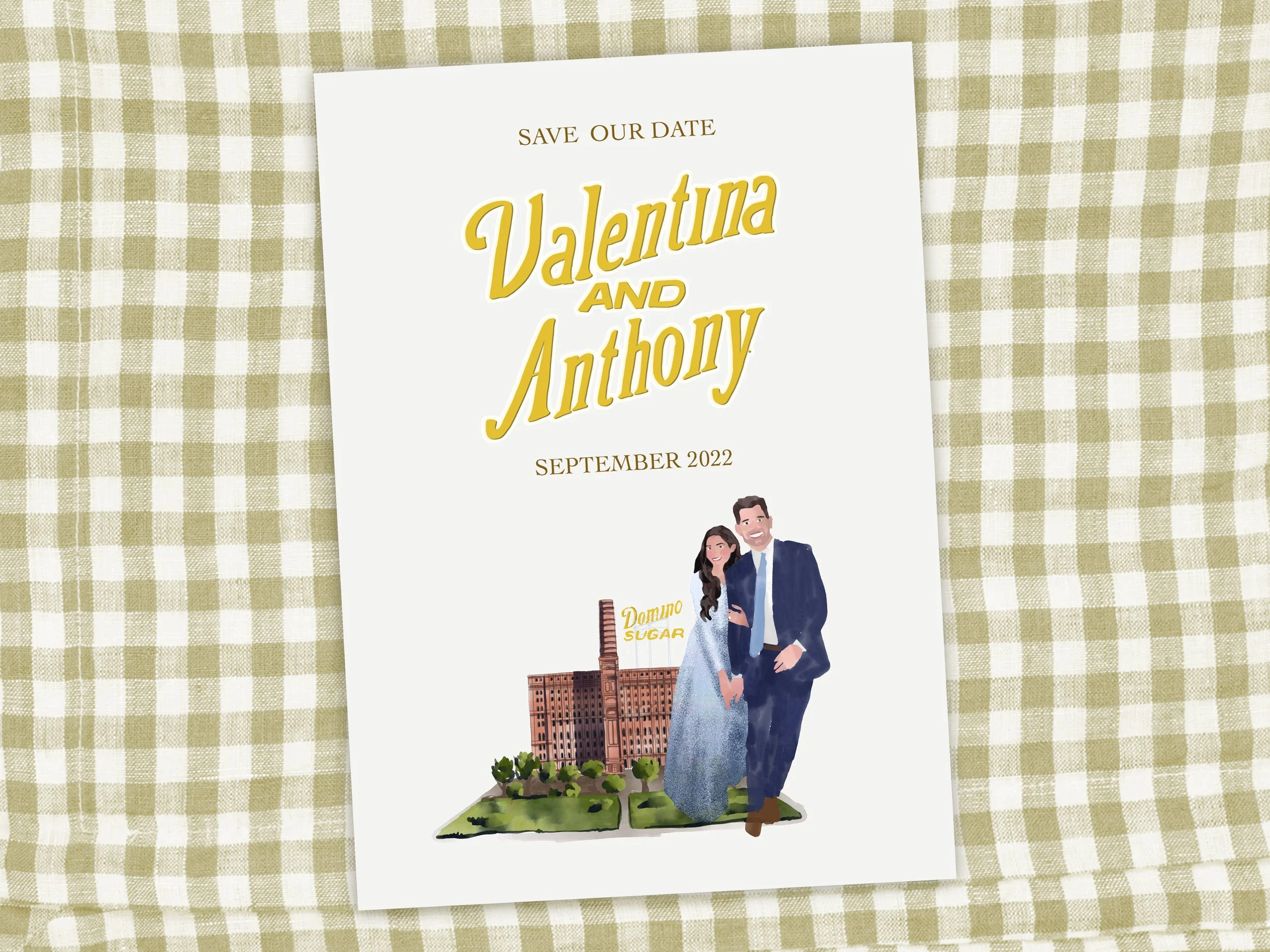 Val and Tony Jul 13 Written By Caitlin Brown A proposal for a Save Our Date card echoing the style of the venue: the old Domino Sugar refinery in Brooklyn! Get in Touch! Caitlin Brown http://www.littlenobleco.com